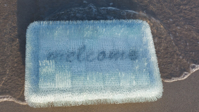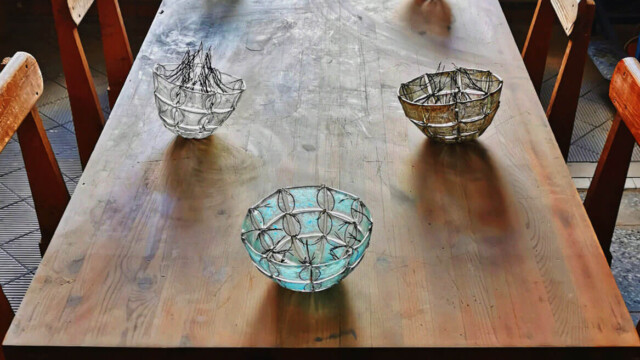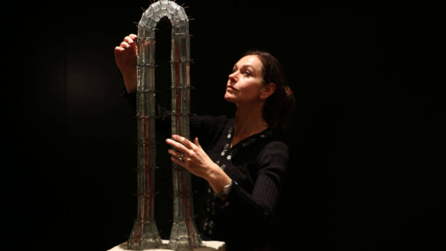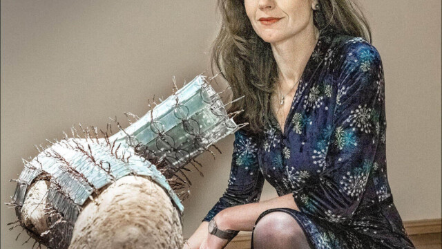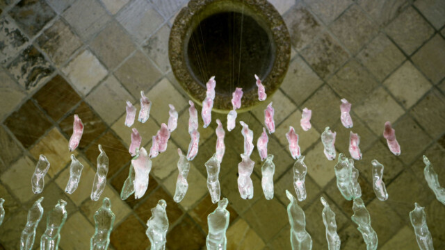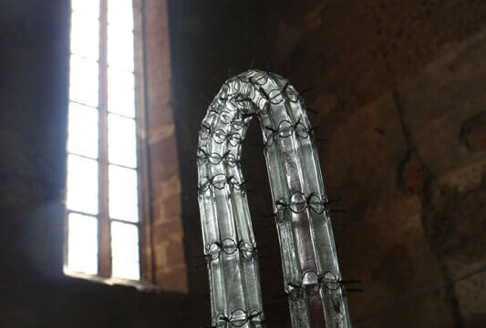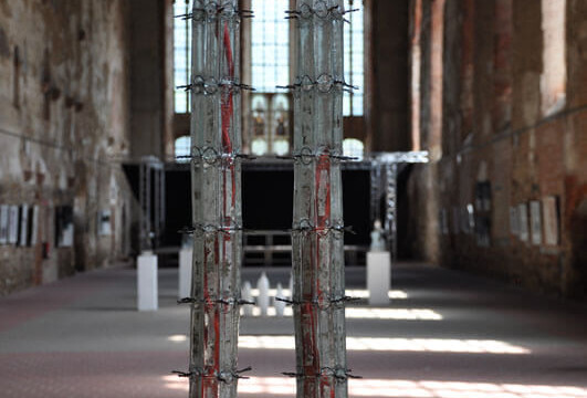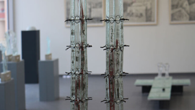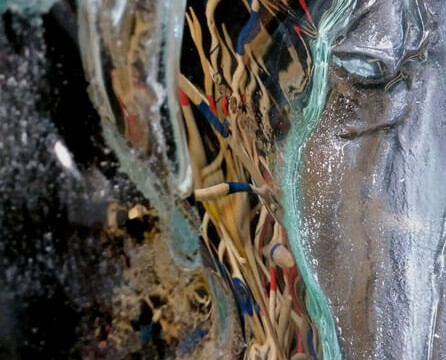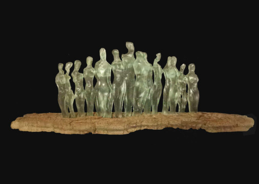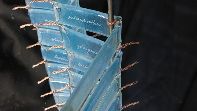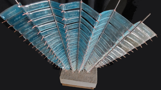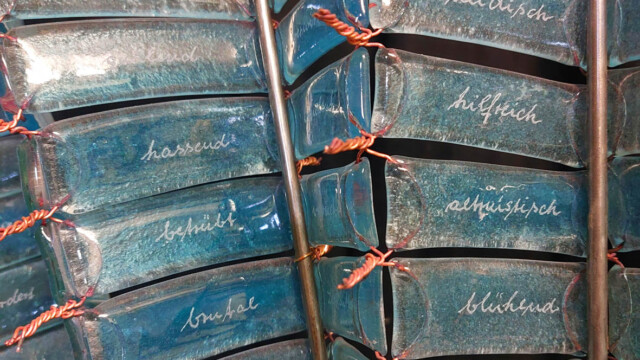 2014 Glas mit Draht verschmolzen und montiert, Holz bemalt, Beton, Metallsockel Höhe 170 cm-
