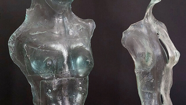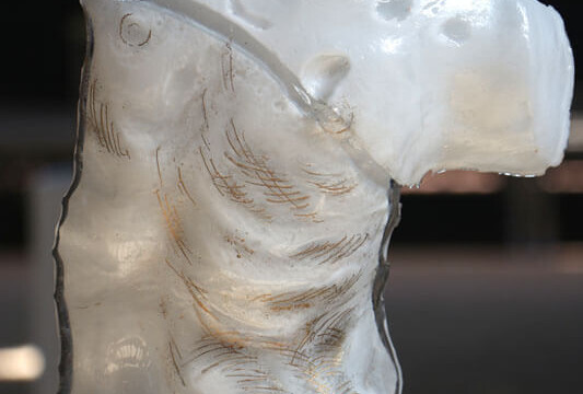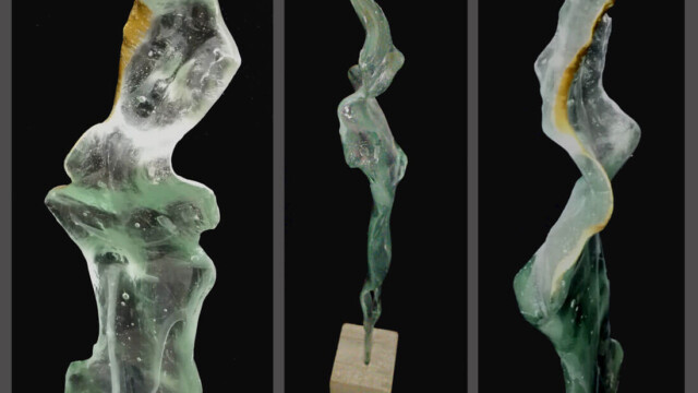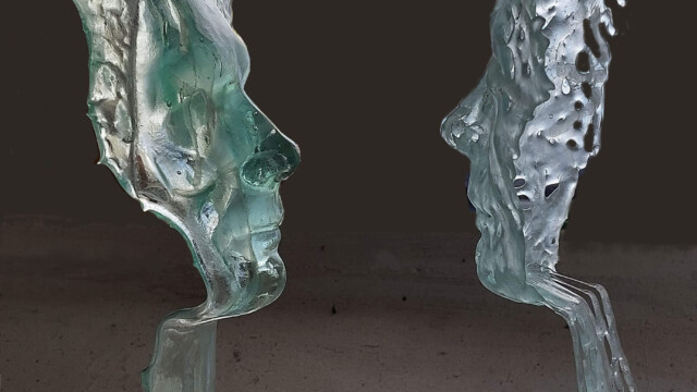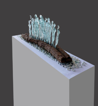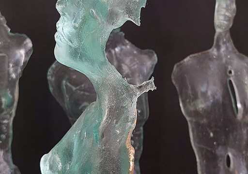 2021/2022 Glas in Form geschmolzen, Betonsockel 28cm bis 33 cm Hoch"was bewegt"