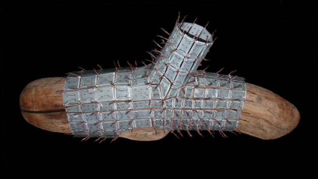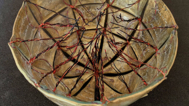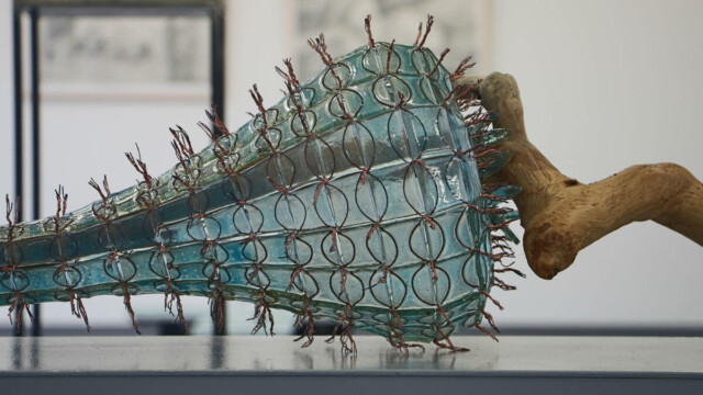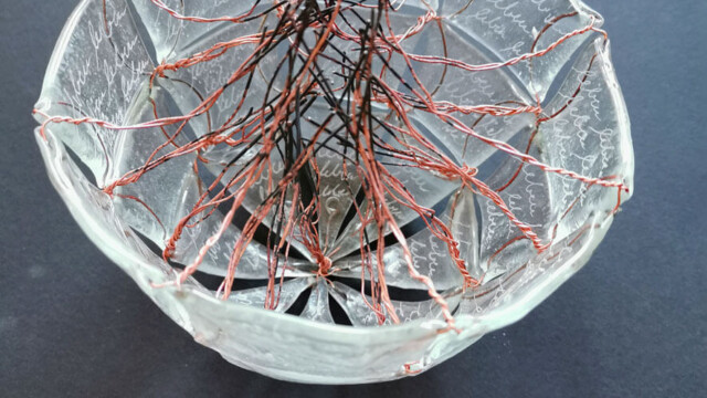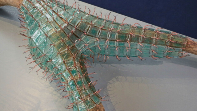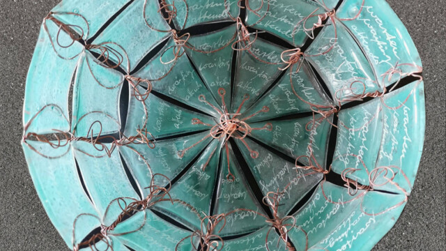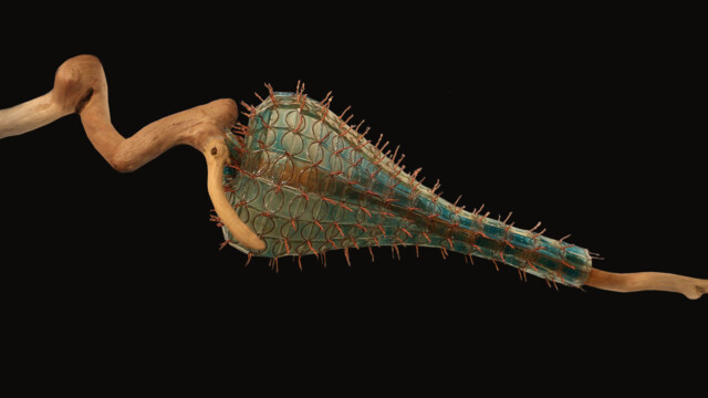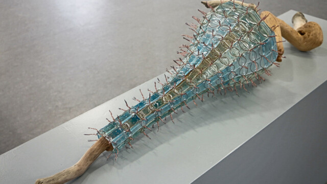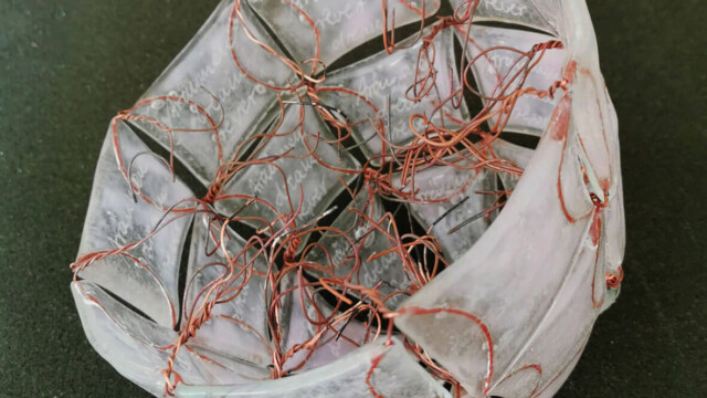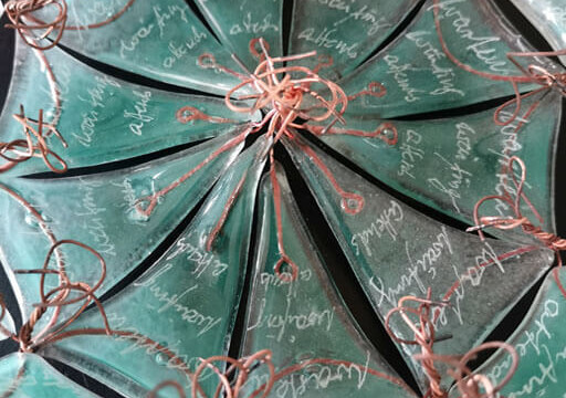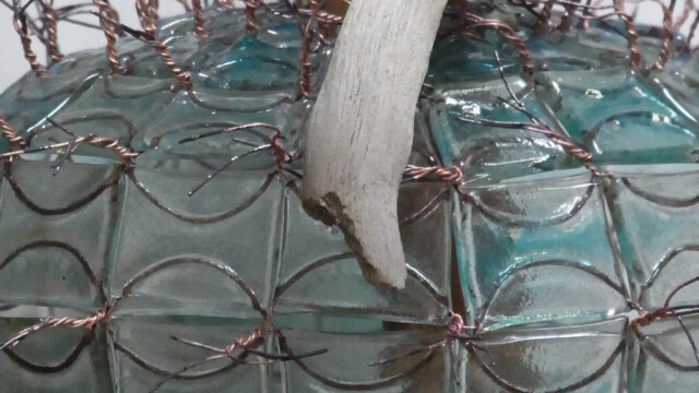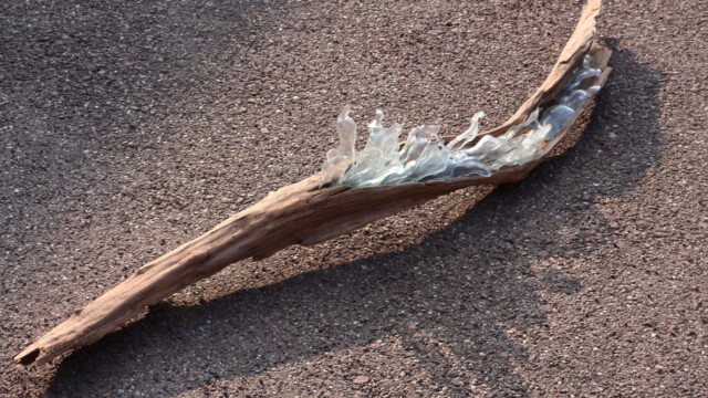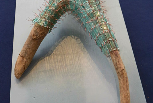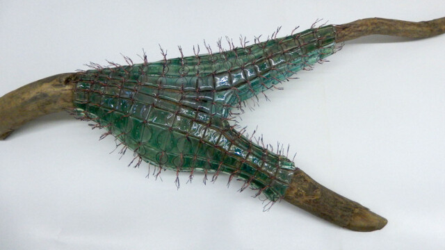 2015 Glas bemalt, mit Kupferdraht verschmolzen und um Treibholz montiert Länge 120 cm"Tor"