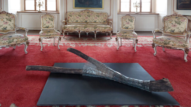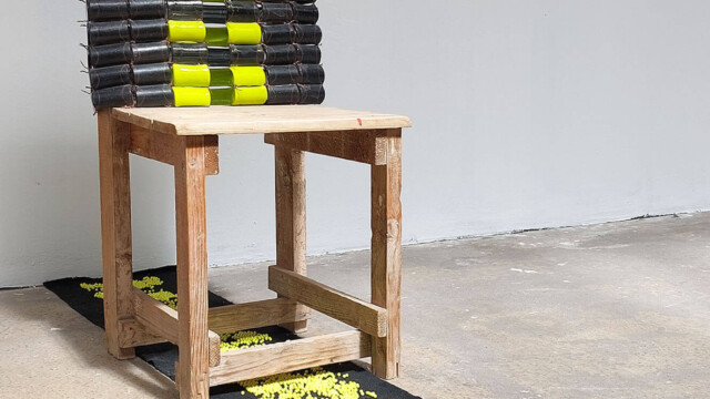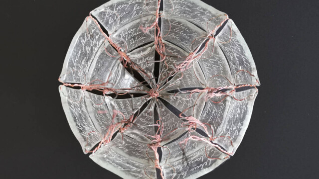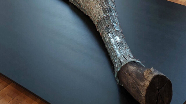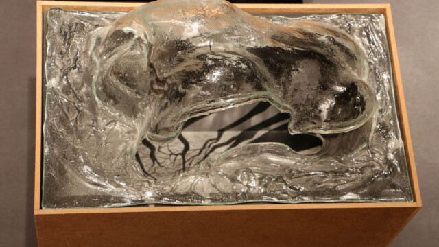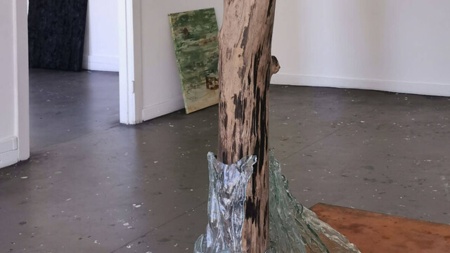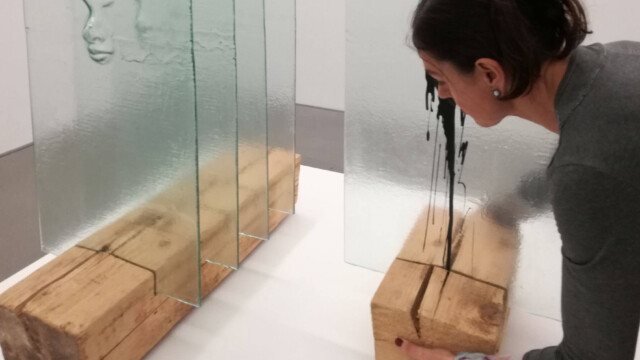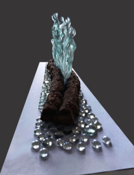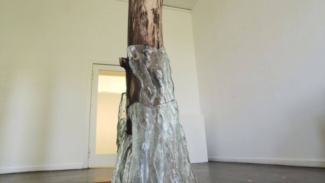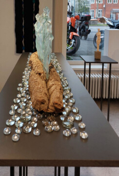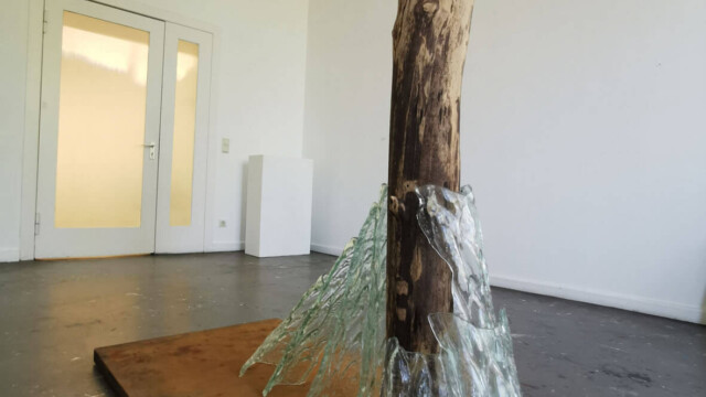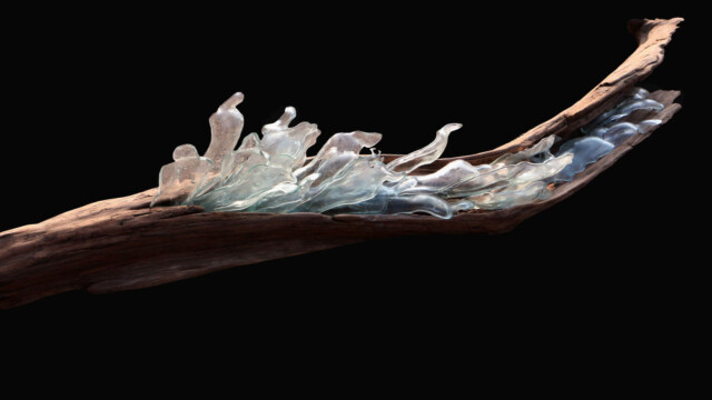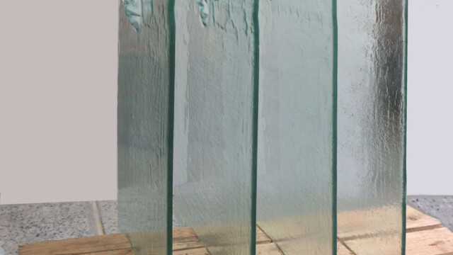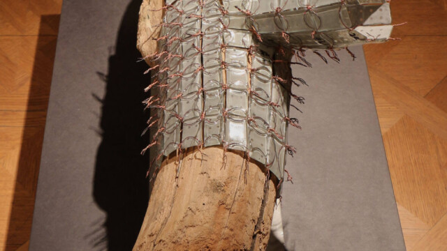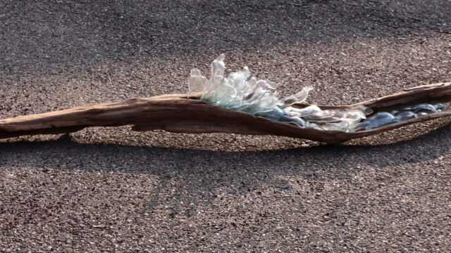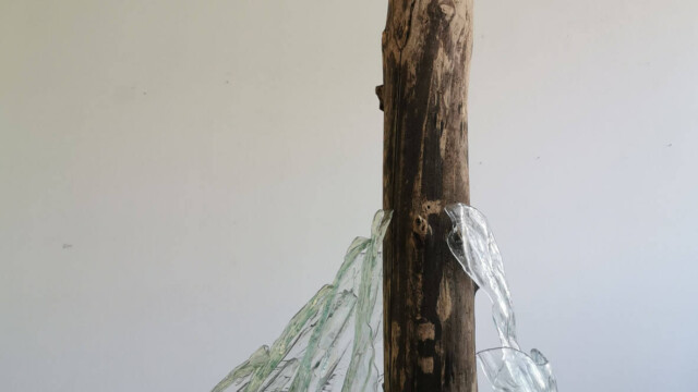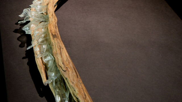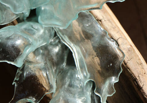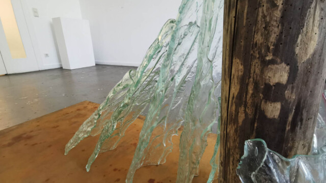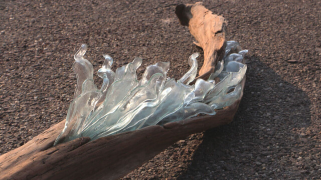2018 Glas heißverformt, Holzbohlen 100 x 70 x 80 cm"Symbiose II"